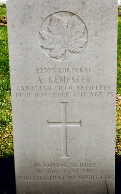 42703 Corporal A KEMPSTER Canadian Field Artillery 19th November 1918 Age 25