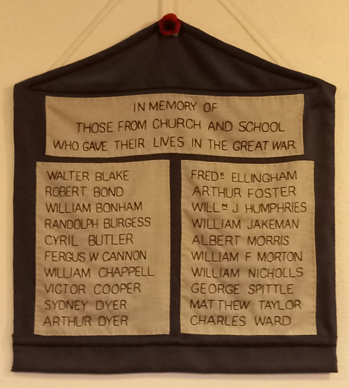 In memory of those from church and school who gave their lives in the Great War 1914 – 1918